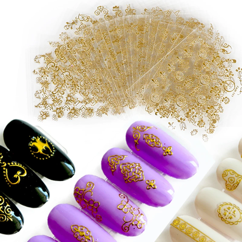 30 шт 3D Золотые наклейки для дизайна ногтей полые наклейки смешанный дизайн клей цветок Типсы для ногтей буквы бабочка украшения для дизайна...