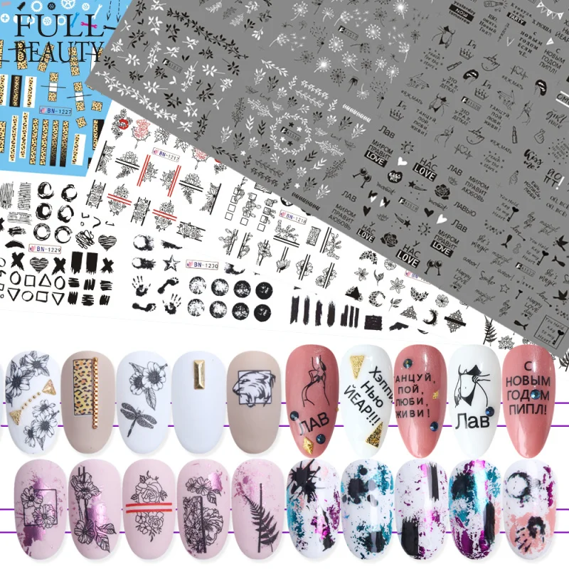 36 шт. смешанный цветочный красочные наклейки Лето ногти Стикеры цветок маска девушка украшения Вода Трансфер Маникюр ползунок CHBN1213-1248