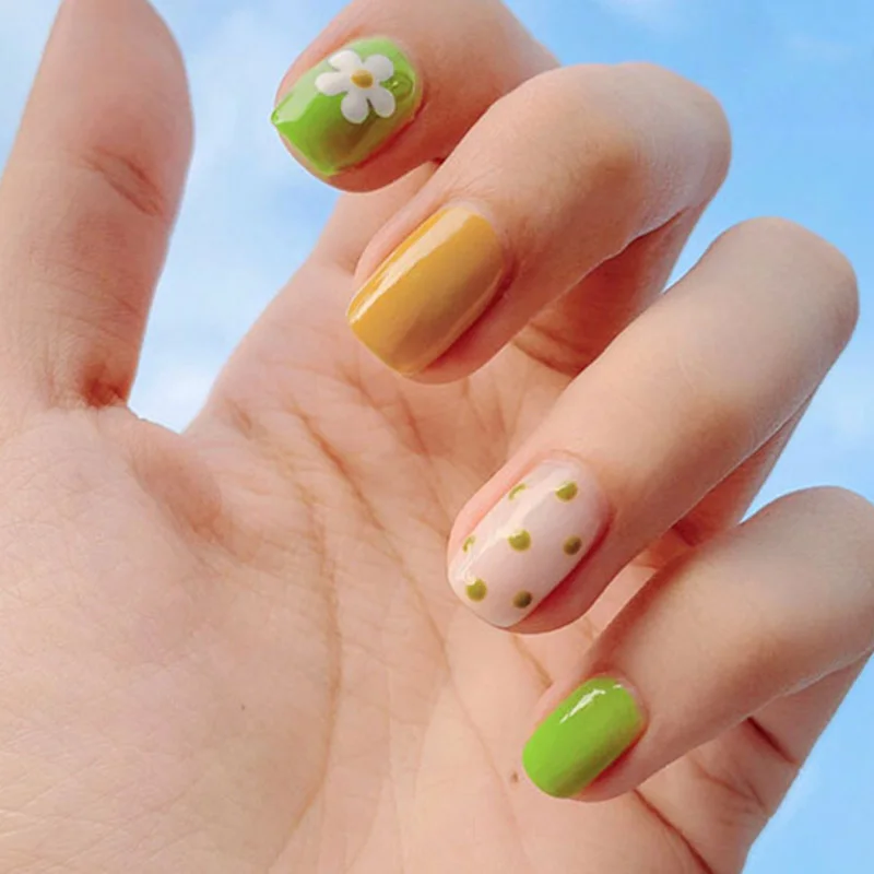 24 шт./компл. авокадо зеленый полное покрытие флэш-ногтей Лето светло-зеленая волна точка поддельные ногти Квадратная Головка несколько цвет...