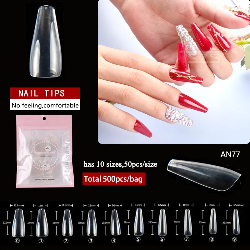 1 пакетов/лот 500 шт 10 размер без каблука Форма ABS искусственные ногти полное покрытие гроб ногтей длинные натуральный прозрачный балетки Тип...