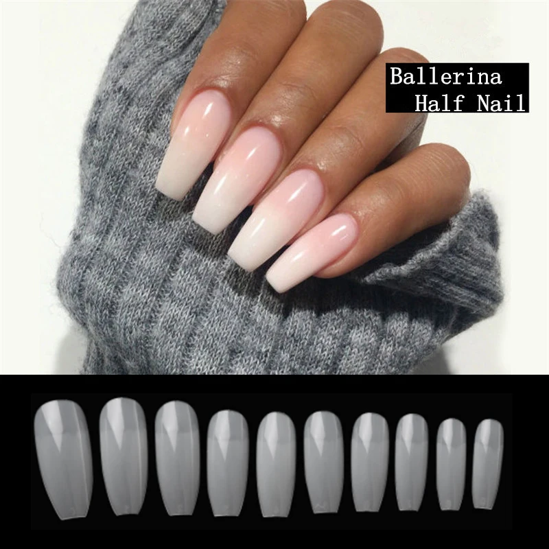 100 шт./кор. DIY балерина гроб Форма Половина Обложка накладные ногти французские акриловые УФ-гель для салона искусственных ногтей искусствен...
