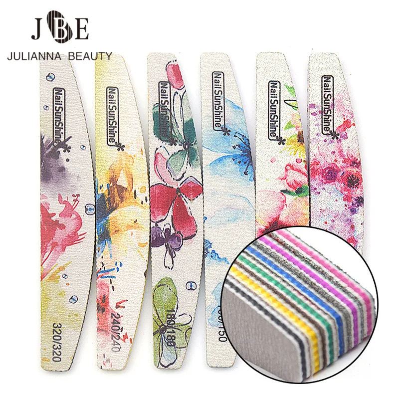 6 шт пилочка для ногтей 80/100/150/180/240/320 брусок для шлифовки блок Двусторонняя пилочка для ногтей с цветами для гель для ногтей маникюрный набор ...