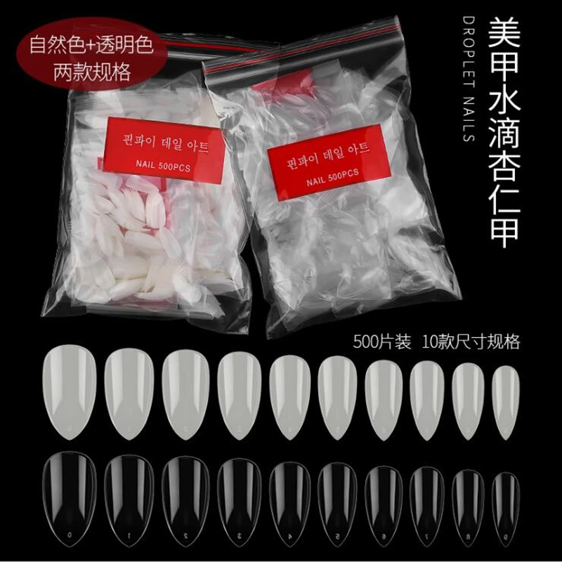 Дизайн ногтей японские миндальные капли кончики для ногтей без следов пластины натуральный цвет прозрачные накладные ногти 500/шт