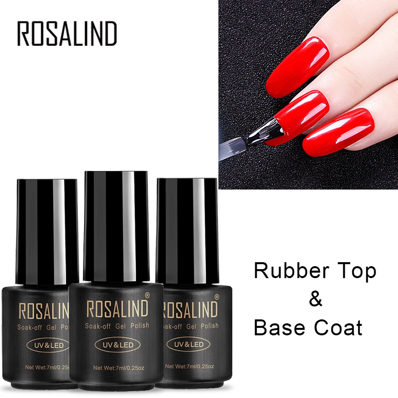 Розалинд 2 шт. Топ & базовый гель-Лаки 7 мл прозрачный лак комплект цвета грунтовки полу постоянный Soak off ногтей книги по искусству УФ гель лак ...
