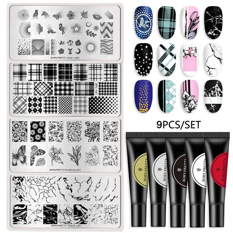 BORN PRETTY 9 шт./компл. Гель-лак для ногтей с штамповочной пластиной шаблон для дизайна ногтей чистый цветной Гель-лак для ногтей