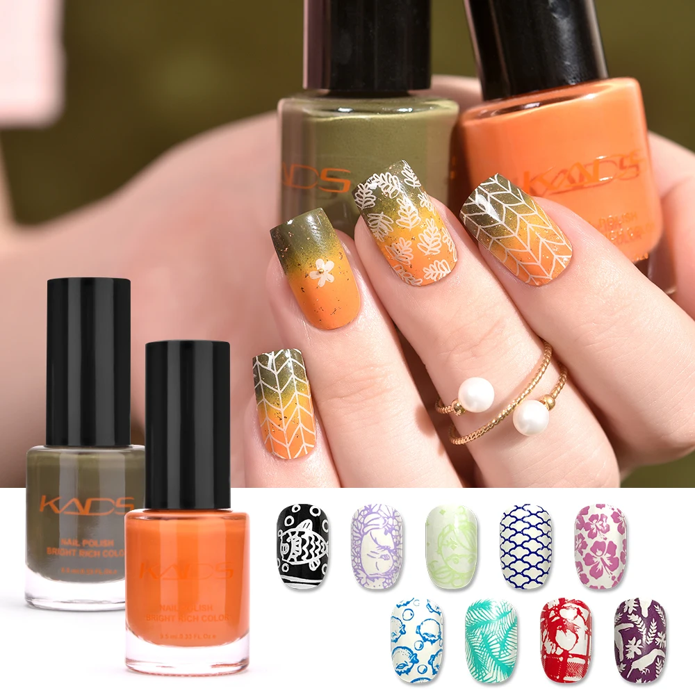 KADS, новинка, 9,5 мл, два в одном, лак для ногтей, тиснение, чистый цвет, флуоресценция, жемчуг, лак для ногтей, для тиснения, лак для ногтей