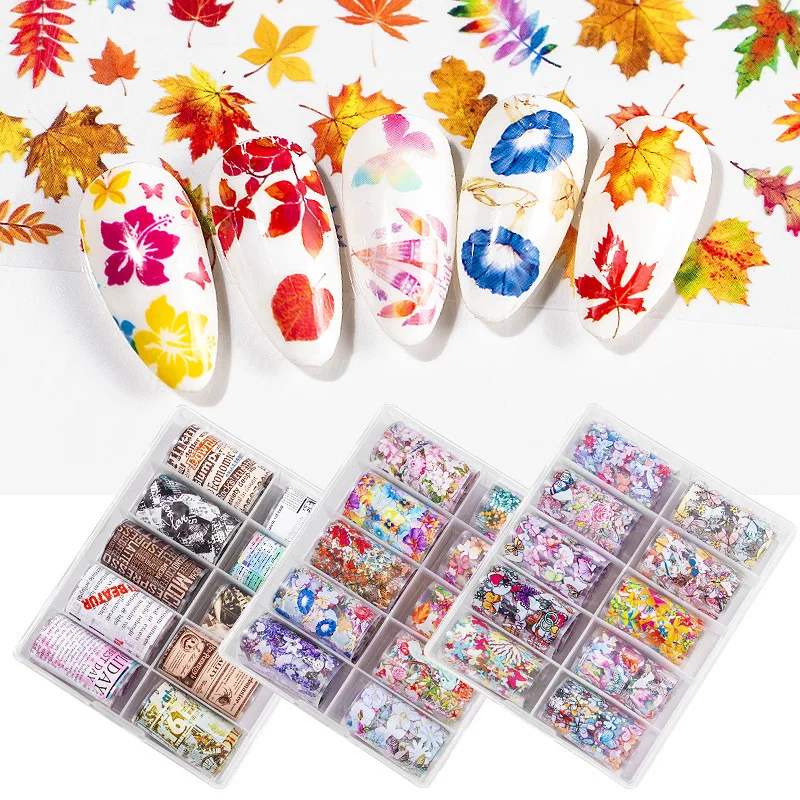 10 шт., осенние листья, украшения для ногтей, разноцветные переводные наклейки для ногтей, фольга, надпись, клейкая бумага