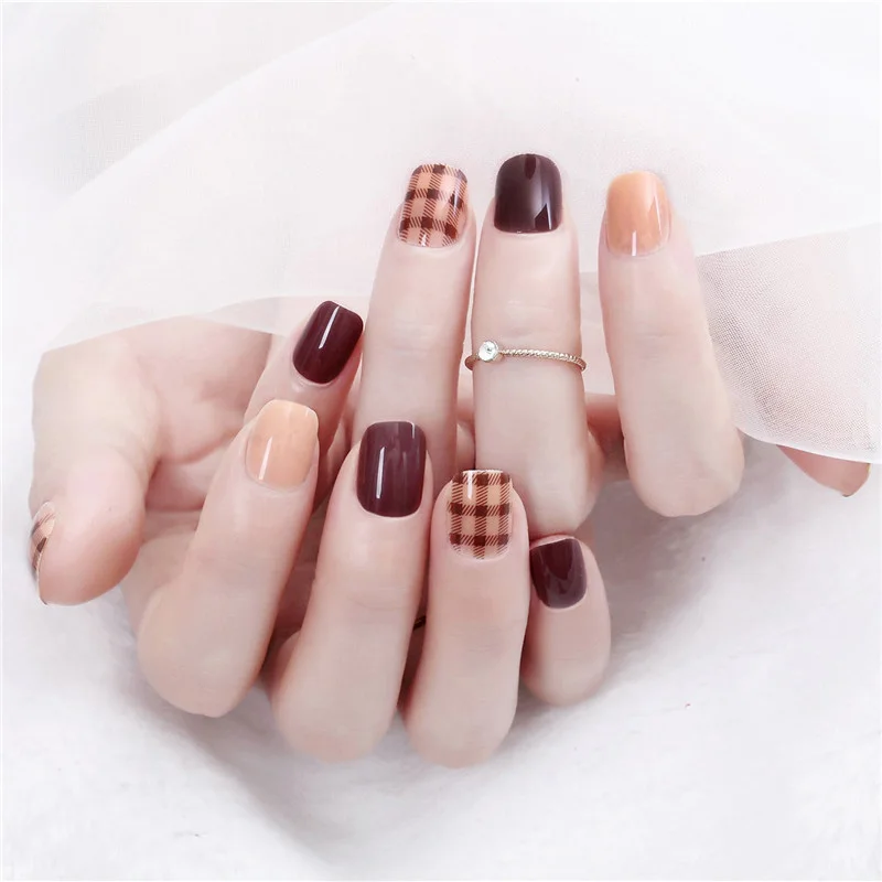 24 шт темно-кофе коричневый поддельные ногти набор сетки искусственные поддельные ногти полное покрытие накладные ногти Короткие естествен...