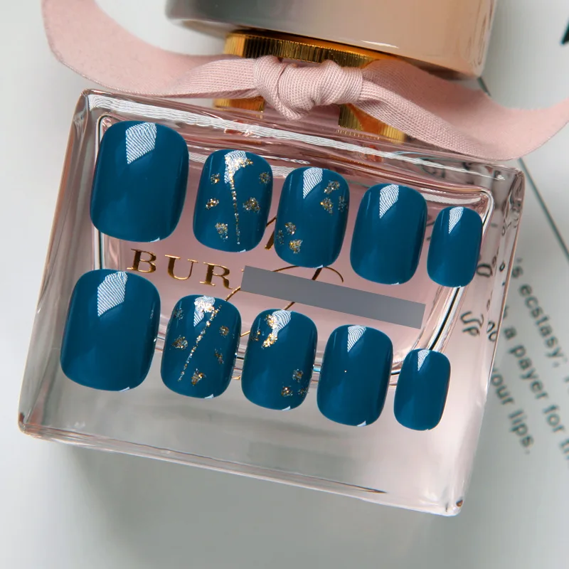 24 шт Съемные накладные ногти серый синий дизайн ногтей законченный круглый короткий абзац квадратный дизайн ногтей с клеем DL