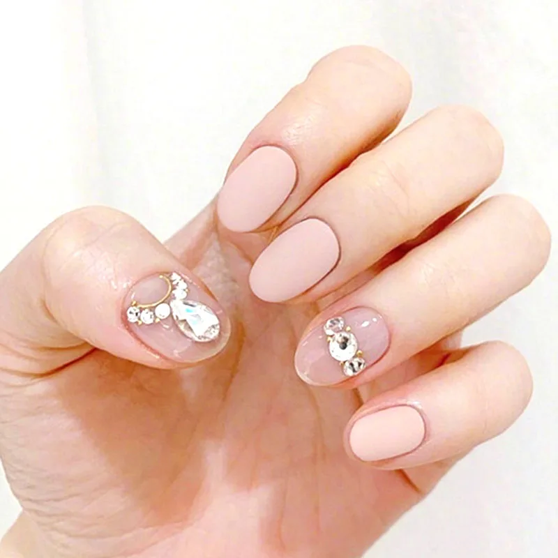 24 шт., новинка, женские, полностью закрывающие ногти, модные, розовые, серые, блестящие стразы, круглые, искусственные ногти с клеем