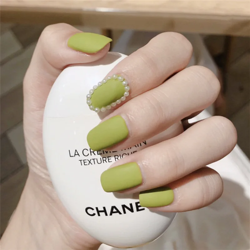 24 шт квадратные накладные ногти авокадо зеленый матовый накладные ногти свежие 3D жемчужные украшения для ногтей для невесты ноские накладн...