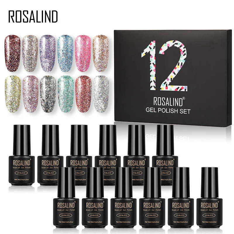 ROSALIND набор гель-лаков для ногтей 7 мл сплошной цвет набор для маникюра Лак для ногтей Vernis Полупостоянный Гель-лак для ногтей комплект Топ и основа