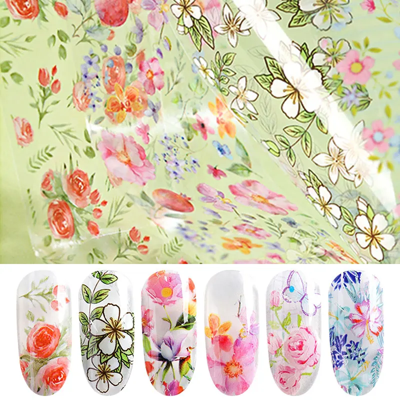 HNUIX 10 цветов для ногтей наклейки в виде листочков Лаки микс розы передачи Фольга для ногтей Наклейка курсоры для лака для ногтей, наклейки дл...
