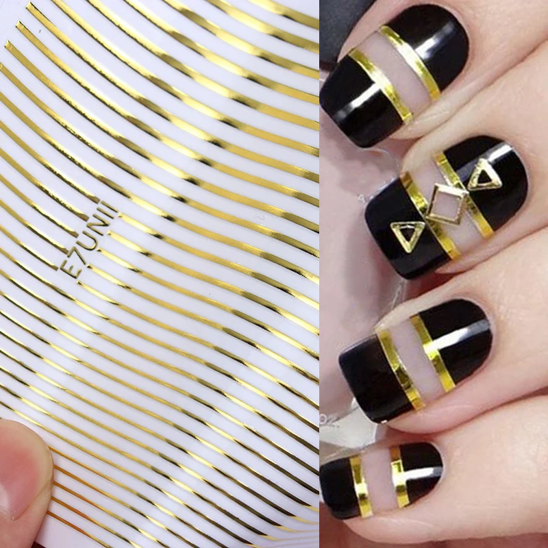 1 шт металлическая 3D наклейка для ногтей золотые Серебристые линии многоразмерная полоса клей для нейл-арта переводная наклейка Дизайн ног...