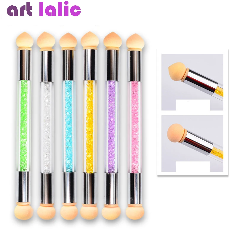 2 головки для дизайна ногтей, губка, градиентная кисть, акриловый Гель-лак, градиентная передача цвета, стразы, блестки, ручка для рисования