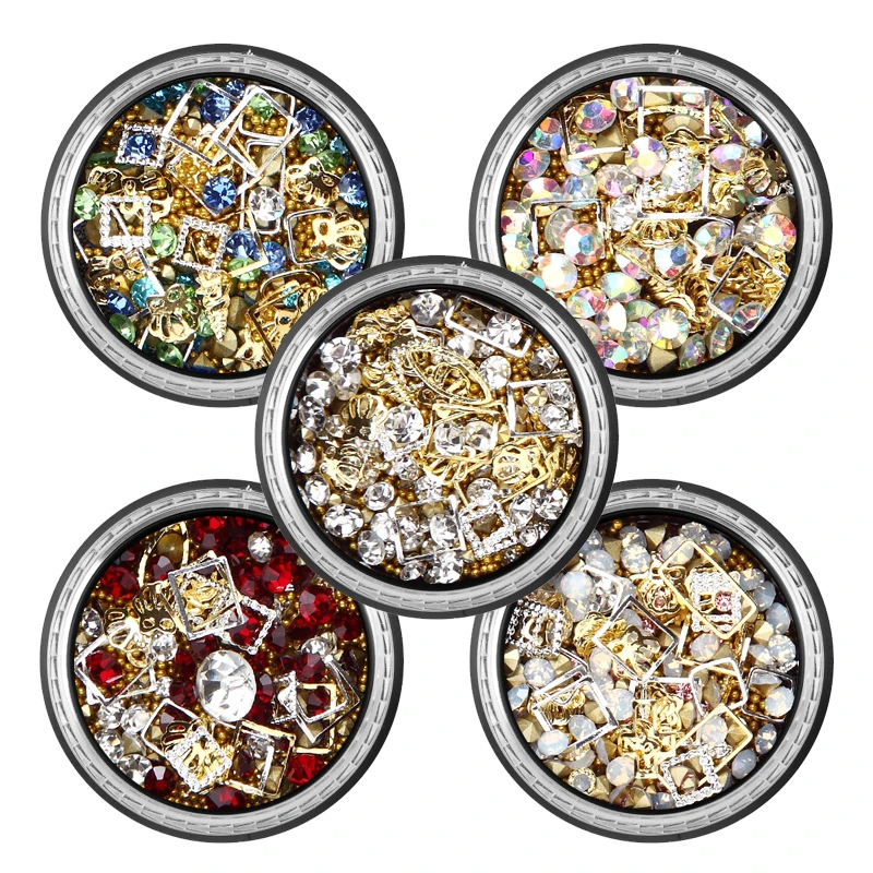 ROHWXY DIY смешанные цвета 3d-украшения для ногтей Стразы для ногтей колесо ногтей блестки кристаллы аксессуары для ногтей бриллианты