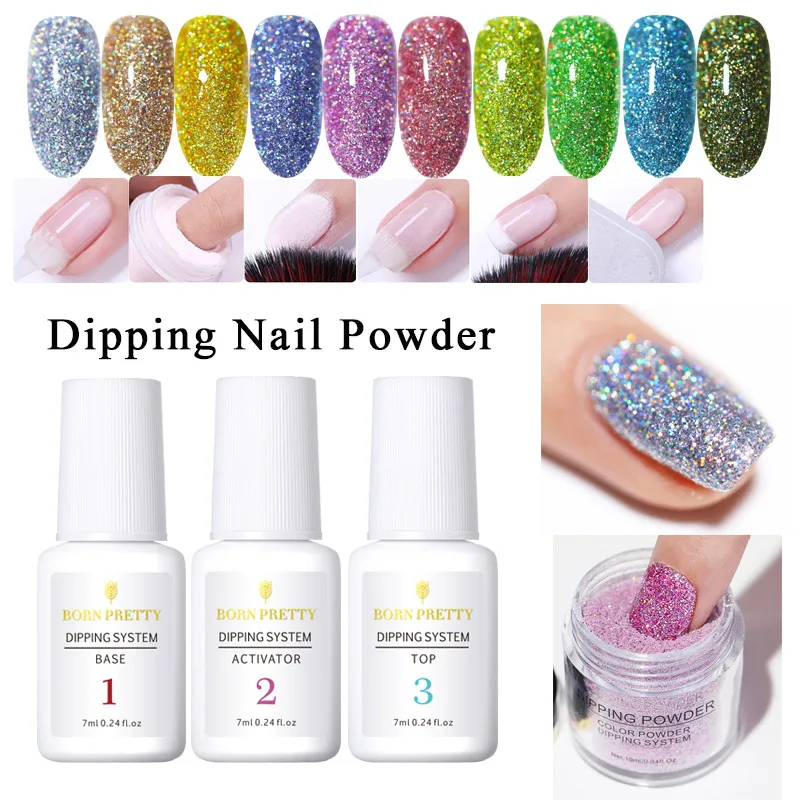 Born pretty, голографическая погружающая блестящая пудра для ногтей без лампы Dip порошок для ногтей основа Топ активатор набор для дизайна ногте...