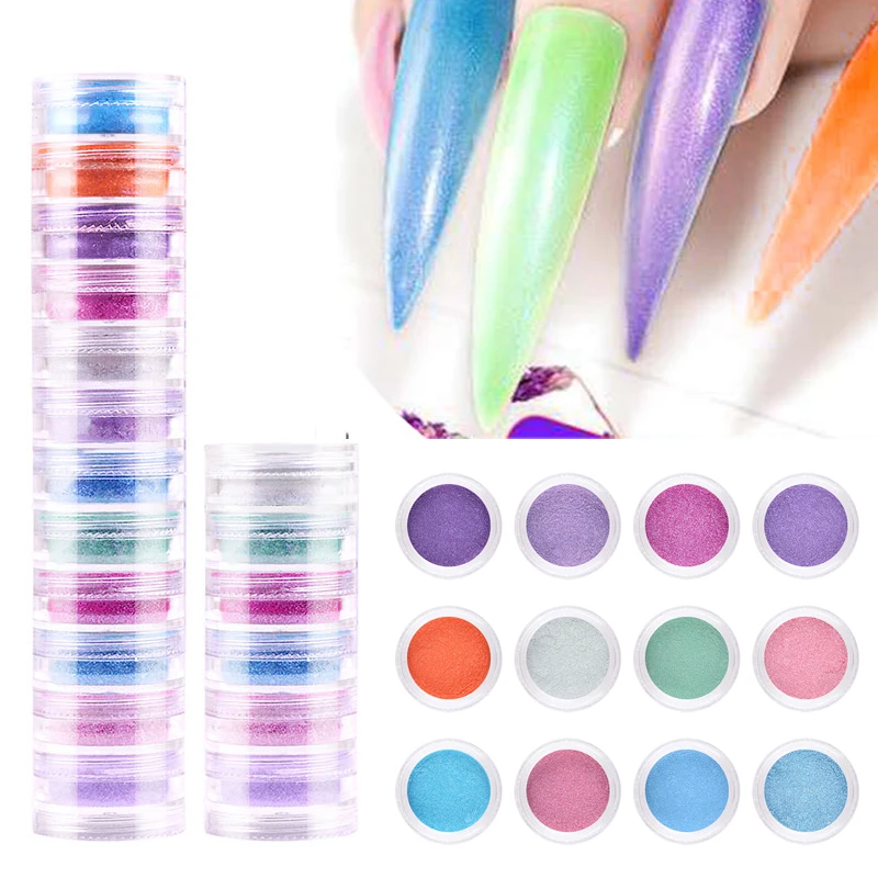 Набор перламутровых пудр для ногтей 12 цветов Блестящий Порошок для ногтей пигмент Красочные украшения для дизайна ногтей порошок хром