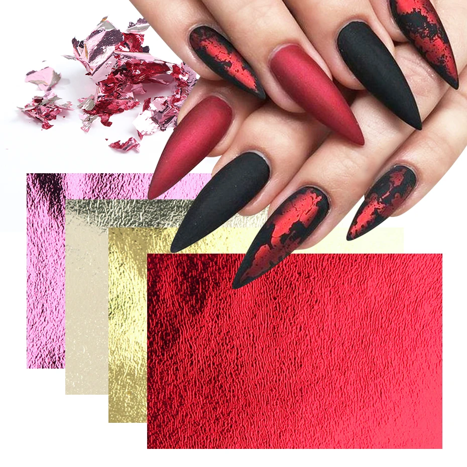 5 шт. Золотой Серебряный ноготь арт хлопья алюминиевая фольга 3D наклейки Советы Блеск зеркальный эффект фольги бумага DIY украшения Маникюр BE1545