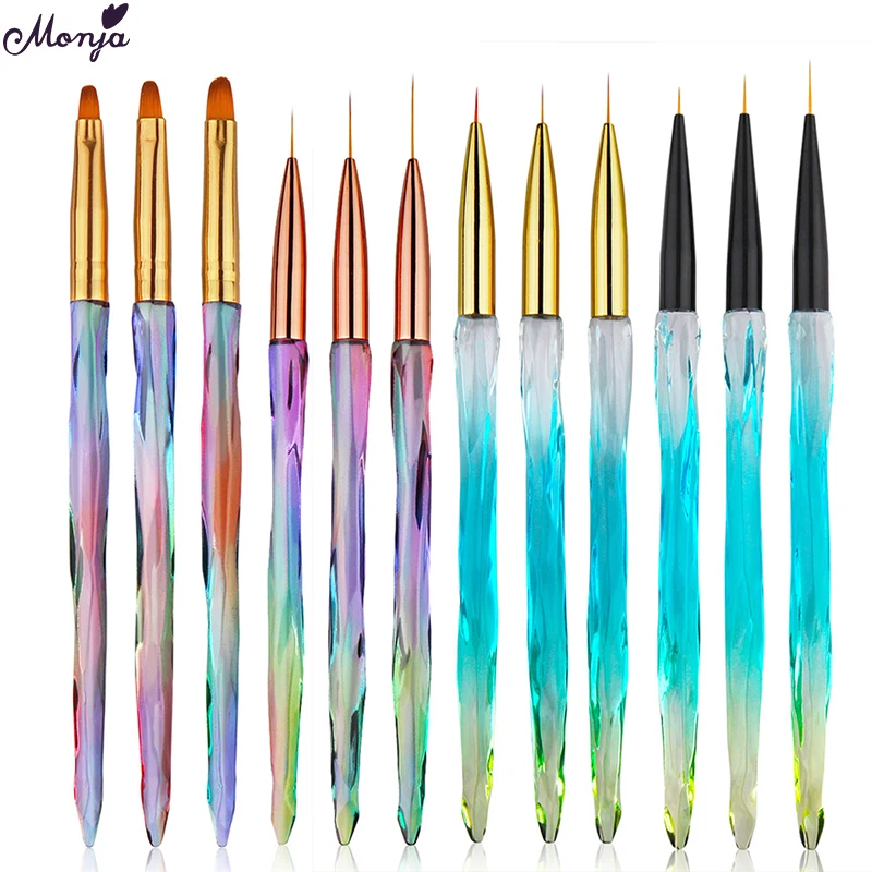 Маникюрный набор Monja, набор кистей для наращивания ногтей с узорами в полоску и цветочной расцветкой, акриловый УФ-гель, ручка для рисования