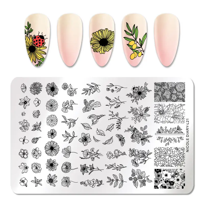 Николь дневник большая прямоугольная штамповочная пластина 14,5*9,5 см цветы цветочный дизайн нержавеющая сталь дизайн ногтей трафарет растительный штамп шаблон