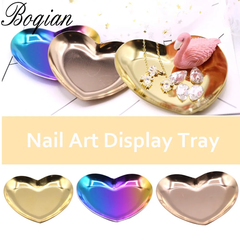 BQAN металлический лоток для хранения цвета розового золота градиентные украшения Стразы для дизайна ногтей пластины с сердечком инструмент...