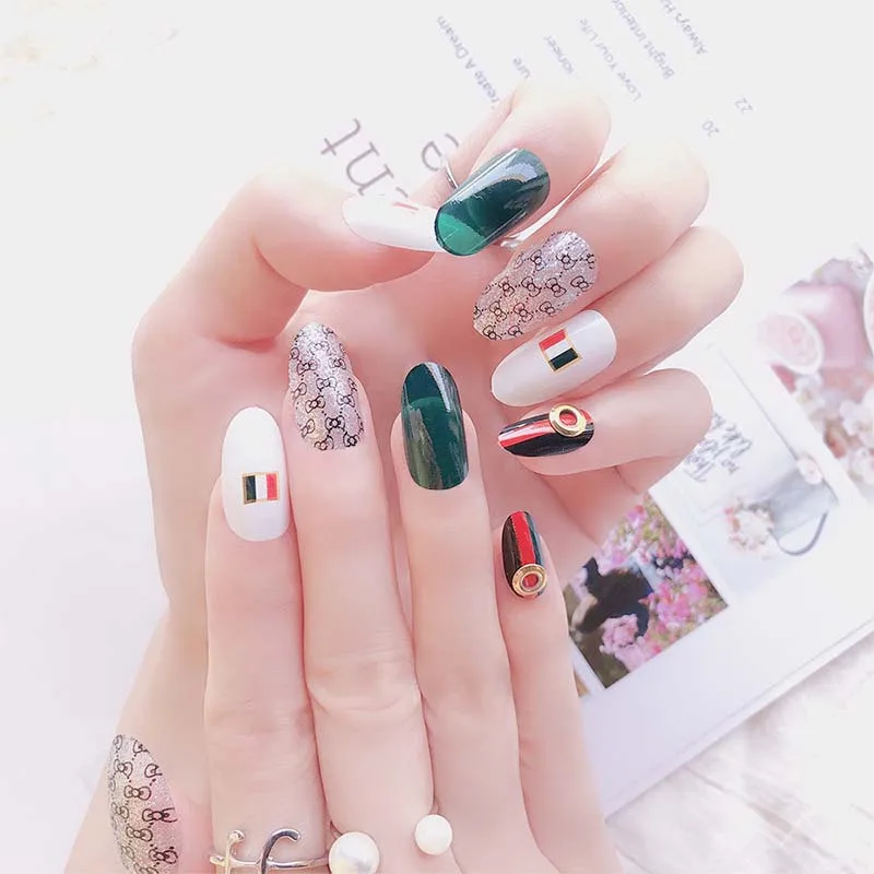 24 шт./упаковка, Готовые накладные ногти средней длины, прессованные, предварительно дизайнерские искусственные акриловые накладные ногти, полное покрытие с клеем 2 г