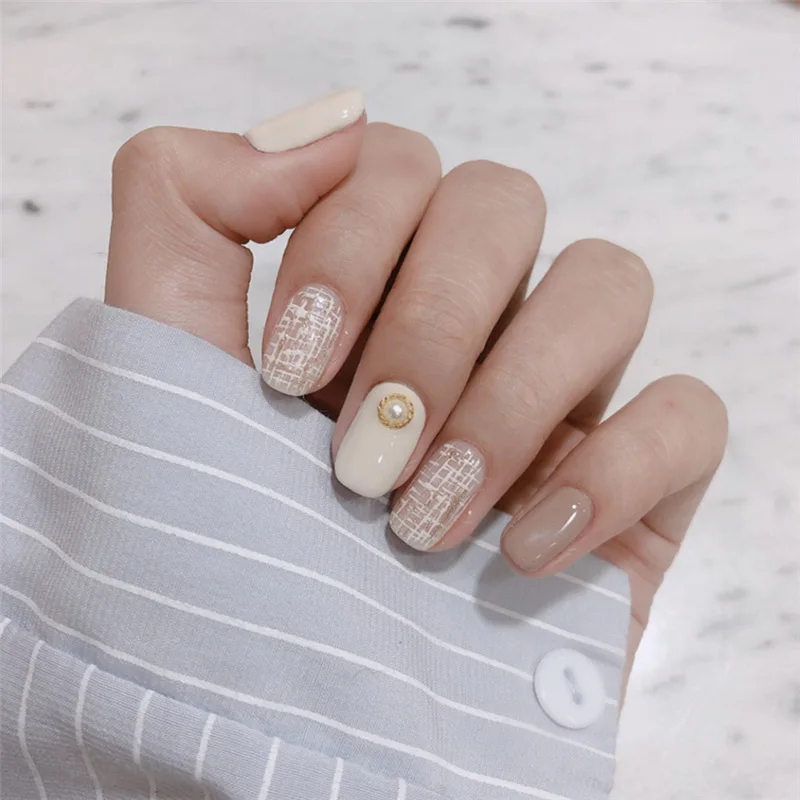 24 шт./компл., короткие, стильные, маленькие, милые, феи, накладные ногти, жемчужные украшения, квадратная головка, ноские, накладные ногти с клеем