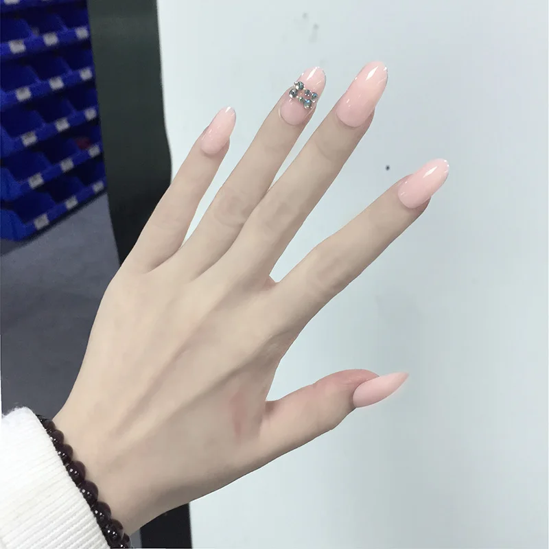 24 шт. в упаковке, 2 г клея, милый обнаженный цвет, накладные ногти для невесты, прессованные, средней длины, круглые, маленькие, французские, простые накладные ногти