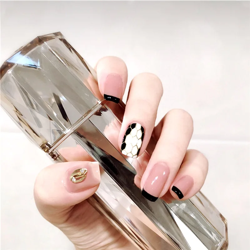 24 шт блестящие розовые гибридные ногти для женщин 3D металлические кристаллы инкрустация средней длины накладные ногти поддельные ногти па...