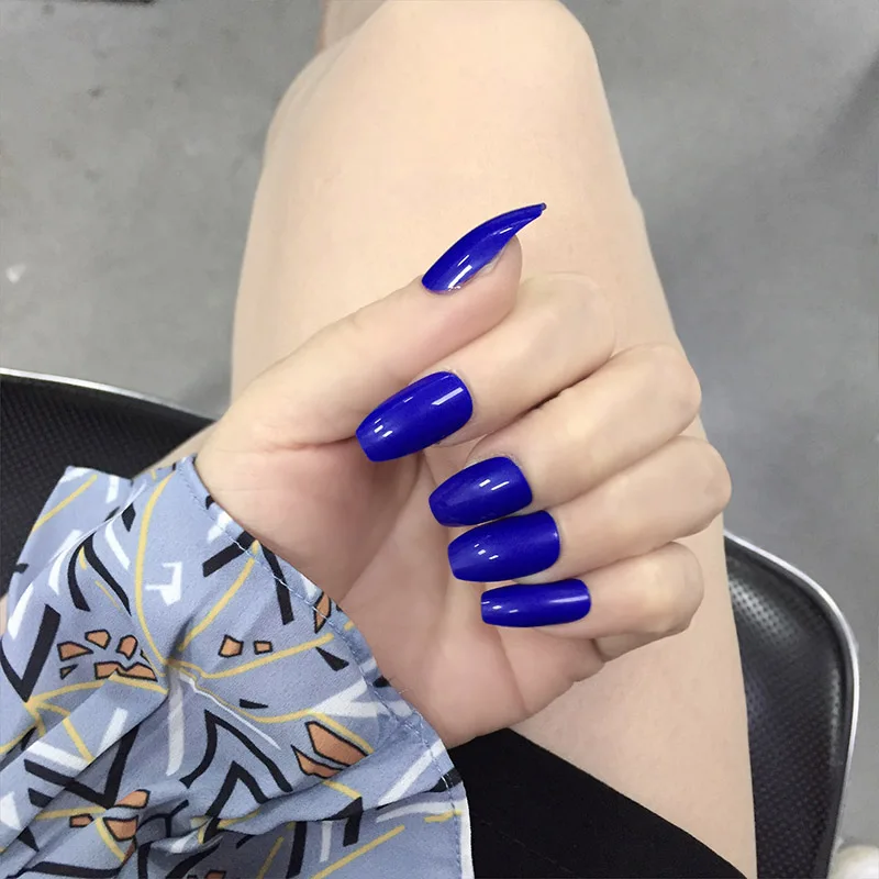 24 шт. наконечники для ногтей длинные для девочек ногти Готовые накладные ногти квадратная голова синие поддельные ногти с 2g клей накладные ...