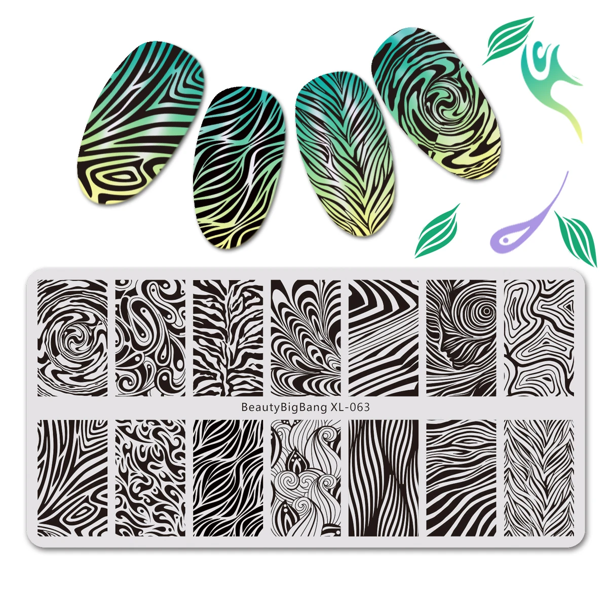BEAUTYBIGBANG штамповочные пластины для ногтей геометрические классические линии Зебра полоски узоры маникюрный набор для наращивания ногтей из...