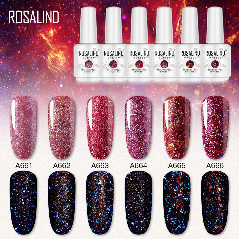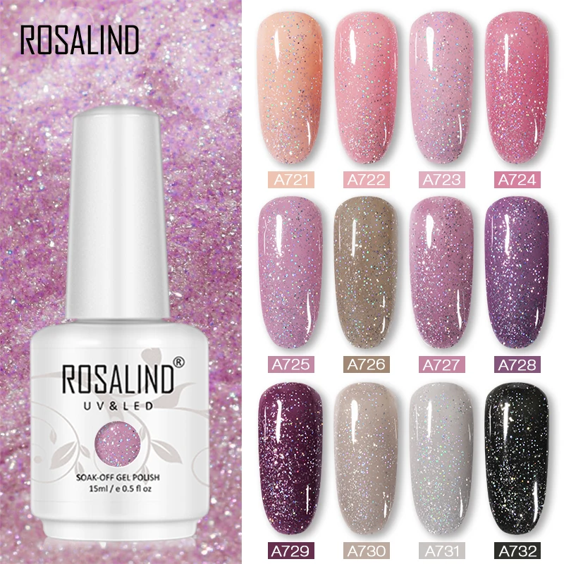 ROSALIND 15 мл светящийся Алмазный Гель-лак для ногтей УФ светодиодный гель все для маникюра Платиновый Дизайн ногтей замочить нужно базовое вер...