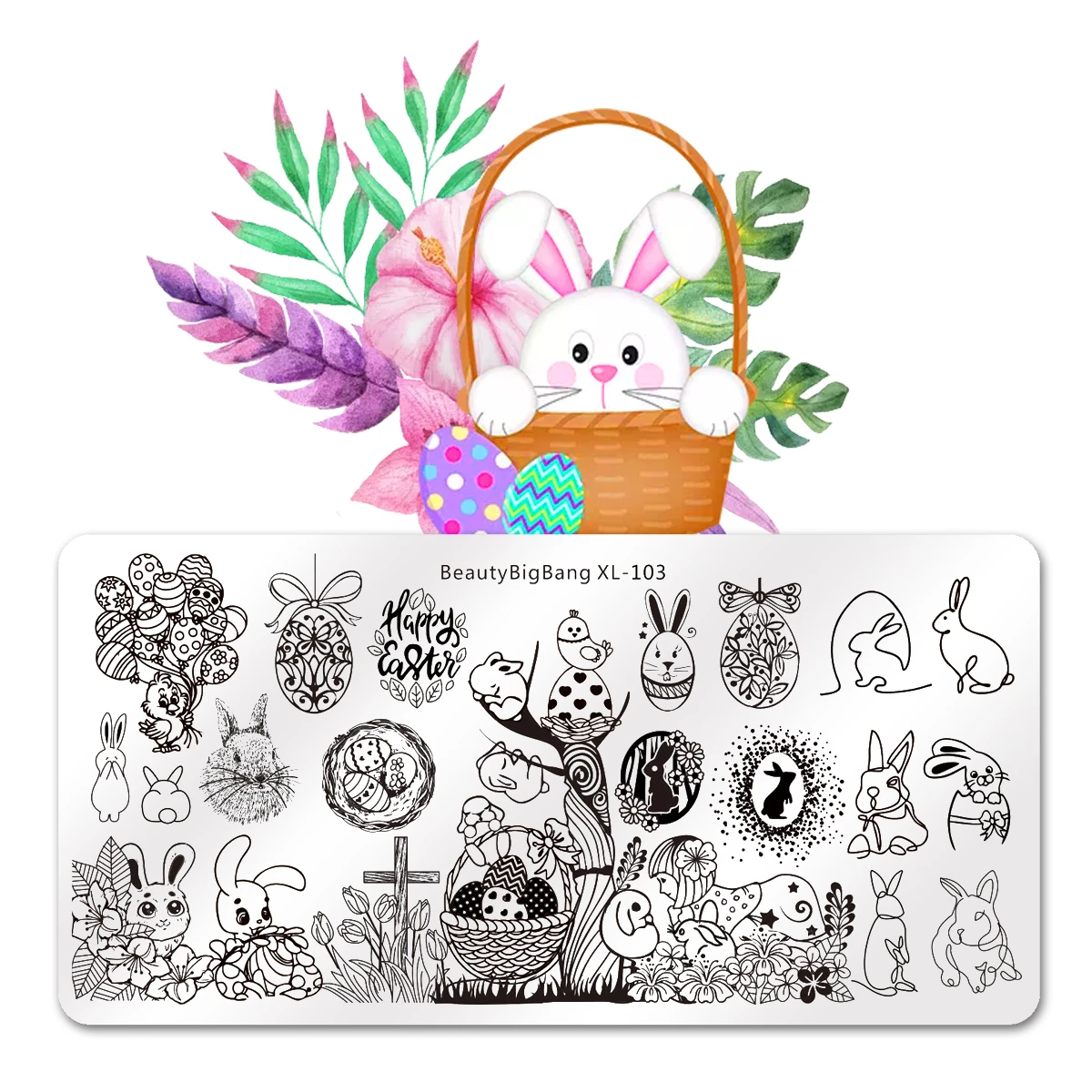 BEAUTYBIGBANG 6*12 см пластины для стемпинга ногтей прямоугольный, для нейл-арта Stamp Plate Счастливой Пасхи яйца в виде милого кролика для ногтей Image Plate