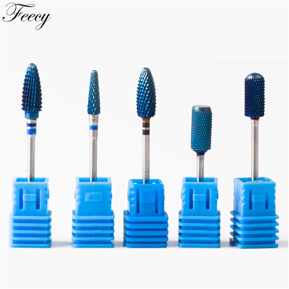 Фреза Маникюр Синий Вольфрам КРУГЛЫЙ пламя ногтей дрель битовый Карбид керамическое сверло Биты Электрический машина аксессуары для