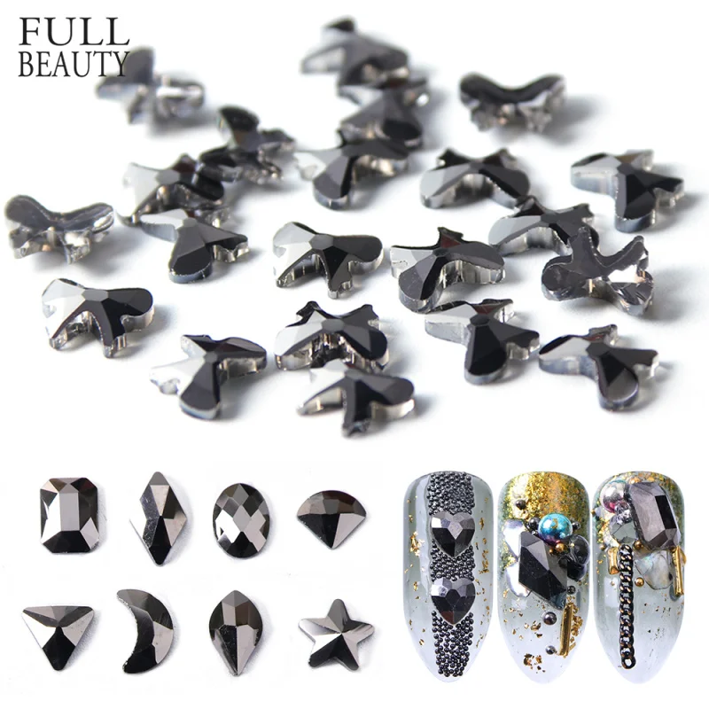 10 шт., треугольные 3D Подвески в форме звезды, капли воды, Черный Кристалл, дизайн ногтей, стразы, сделай сам, с плоским дном, для маникюра, ювелирные изделия с алмазами, CH724