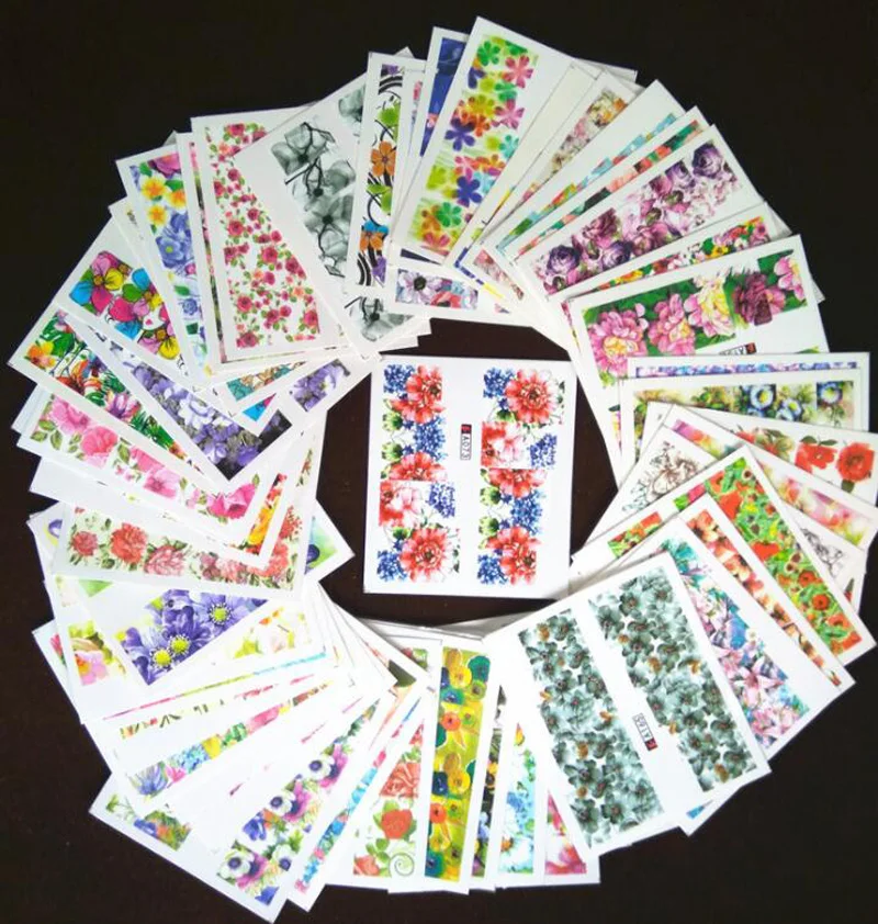 Набор из 50 шт., наклейка для водяного переноса изображения на ноготь, художественные украшения, разноцветные цветы, Мультяшные, Летние гель-лаки для маникюра, Набор насадок для ногтей