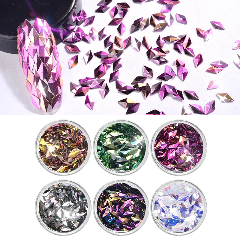 6 цветов Треугольники лазерной голографической ногтей стразами 2,5 мм блеск красочные 3D ногтей блестки ремесло Маникюр порошок хлопья