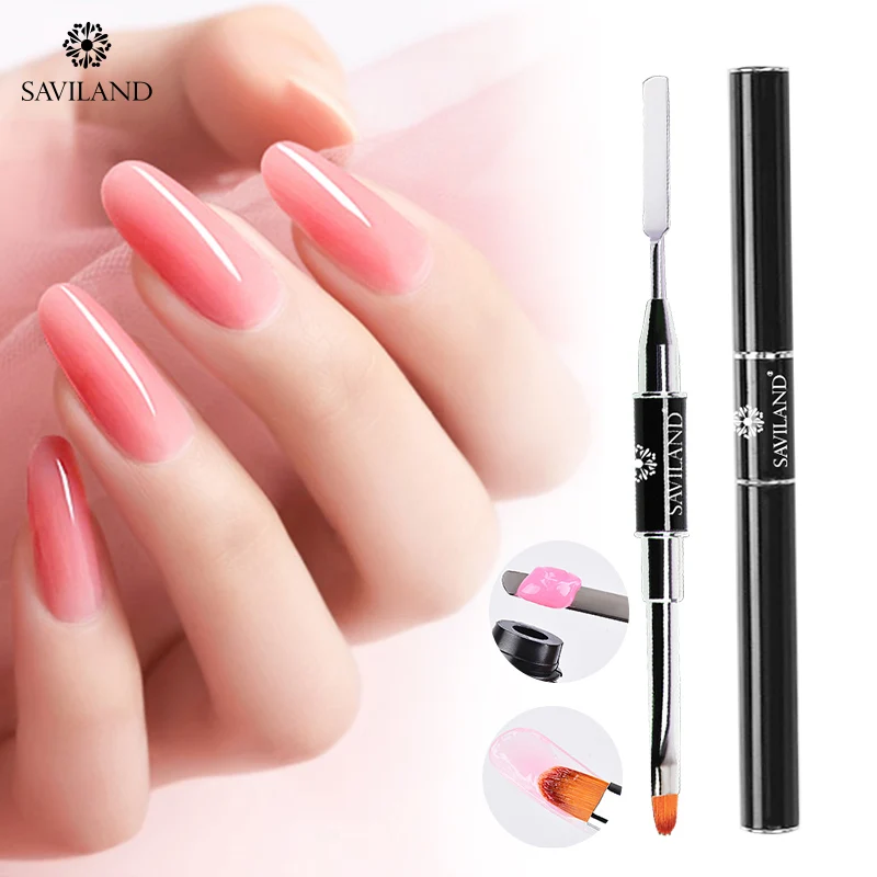 SAVILAND 2 в 1 двойная головка для нейл-арта акриловая полигелевая Удлиняющая кисть для рисования; ручка для маникюра
