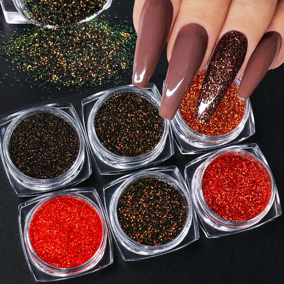 6 шт., блестящая голографическая для ногтей, хлопья, УФ-лак, гель, пудра, набор, блестки, пыль, аксессуары для маникюра, искусство, Декор, JI1539-15