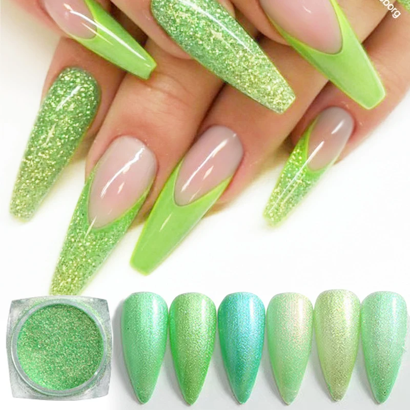 6 коробок/набор, перламутровый набор пудры для ногтей, мерцающий блеск для ногтей, хром, пыль, синий, зеленый, оранжевый набор пигментов, Декорации для дизайна ногтей