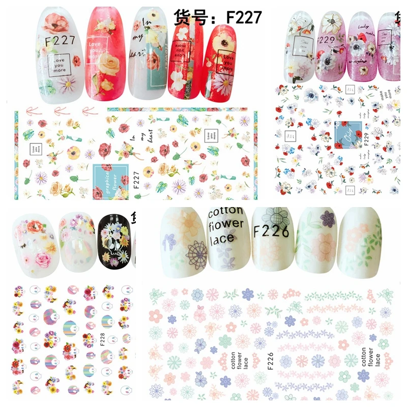 10 шт смешанный дизайн для ногтей художественная фольга переводная Фольга наклейки бумага Красочные цветы клейкие переводные наклейки обер...