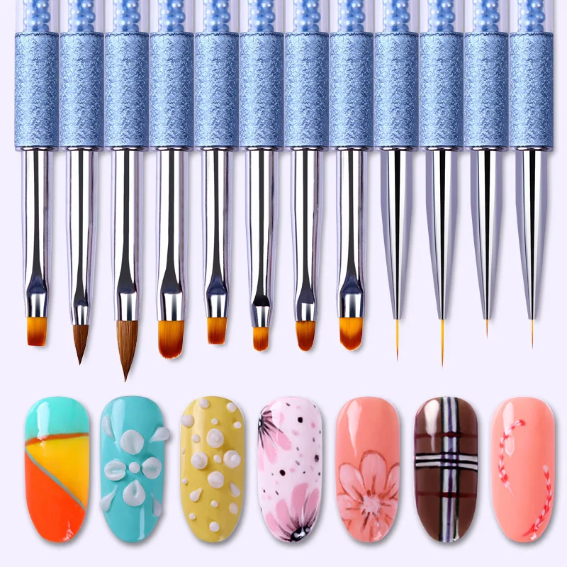 15 шт. дизайн ногтей кисточки лайнер Dotting вентилятор акриловый Builder плоские кристальная Живопись Рисунок вырезка ручка УФ гель набор инструм...