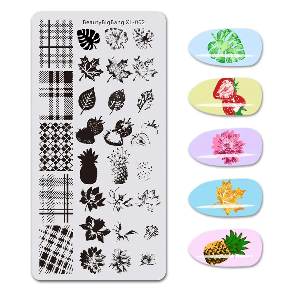 BEAUTYBIGBANG 6*12 см прямоугольная печать DIY поднос для маникюра цветок Геометрическая клетчатая серия Дизайн ногтей штамповка пластины XL-062