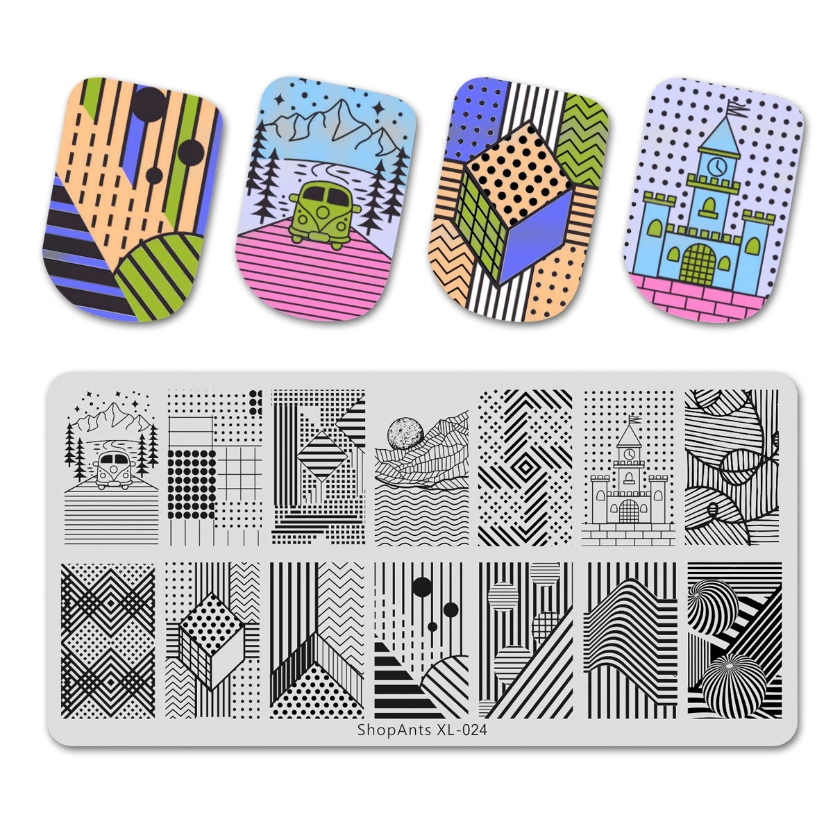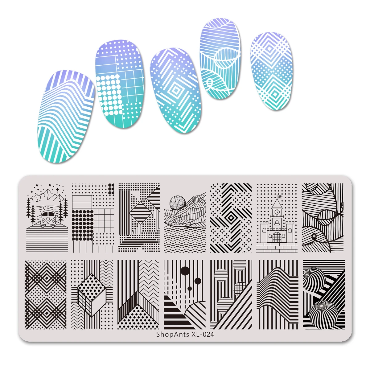ShopAnts 6*12 см из нержавеющей стали штамповки пластины Геометрические линии мяч полоса точка шаблон для печати ногтей шаблон штамп