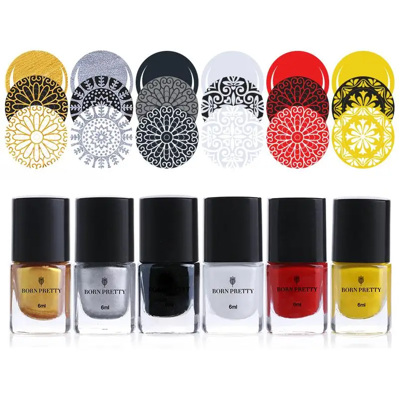 6 бутылок Родился довольно Однотонная одежда стемпинг ногтей покрытие Набор 15 мл 6 мл Маникюр Искусство Лак для стемпинга комплект лаков для...