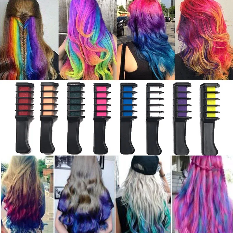BearPaw 10 цветов S женские волосы цветные расчески временный Мел для волос цвет гребень краска для волос Личный Салон укладки волос Инструмент ...
