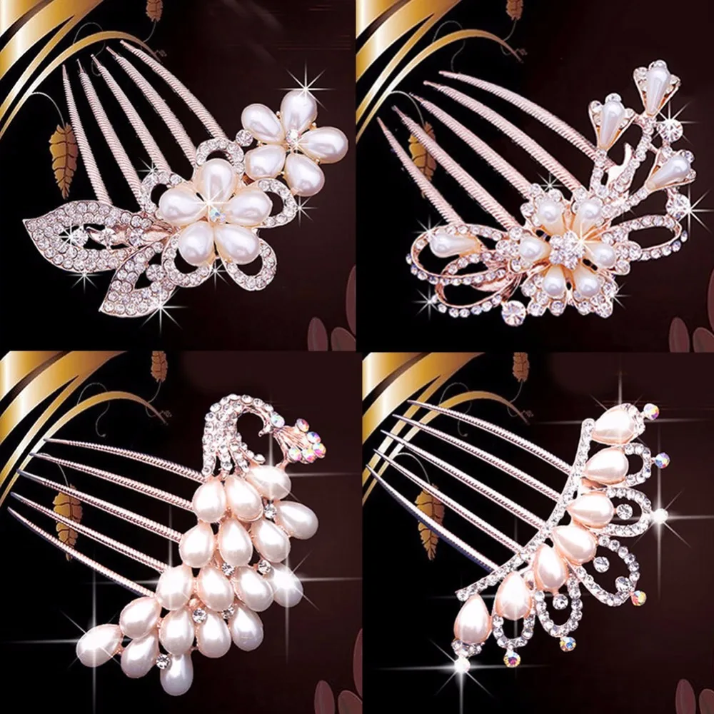 Свадебные Кристалл горный хрусталь, жемчуг Шпилька Цветок Diamante Зажим для волос гребень