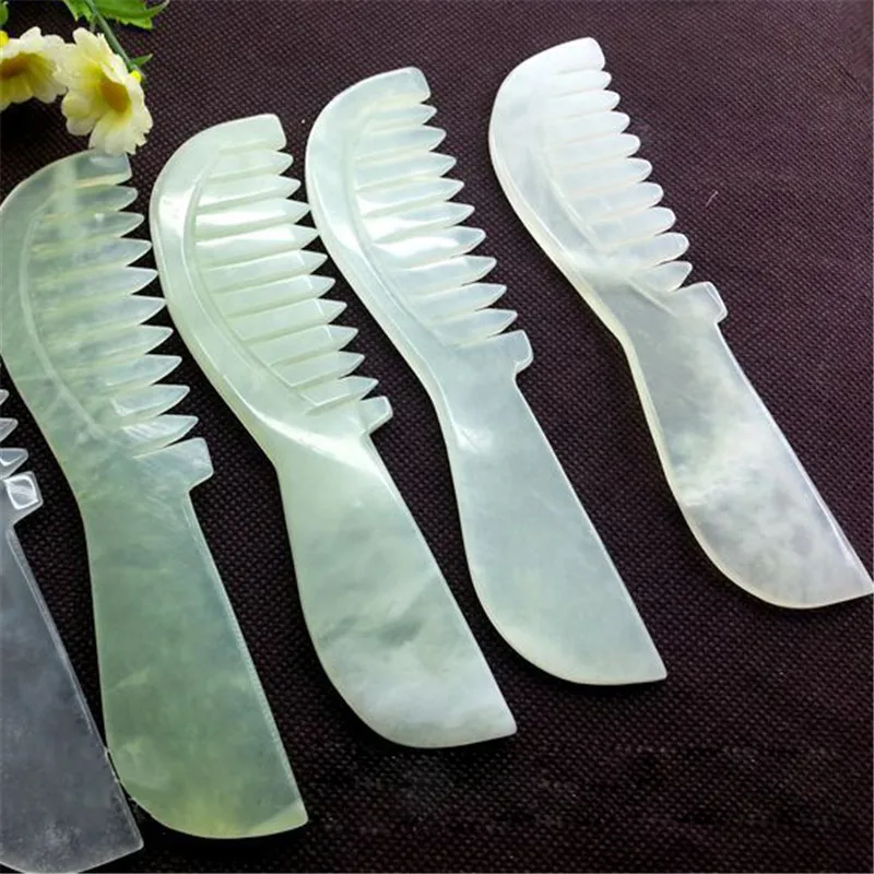 Jade каменный массажер гребень с ручкой акупунктуры спа триггер точки для лечения кожи для похудения Красота здоровья голову