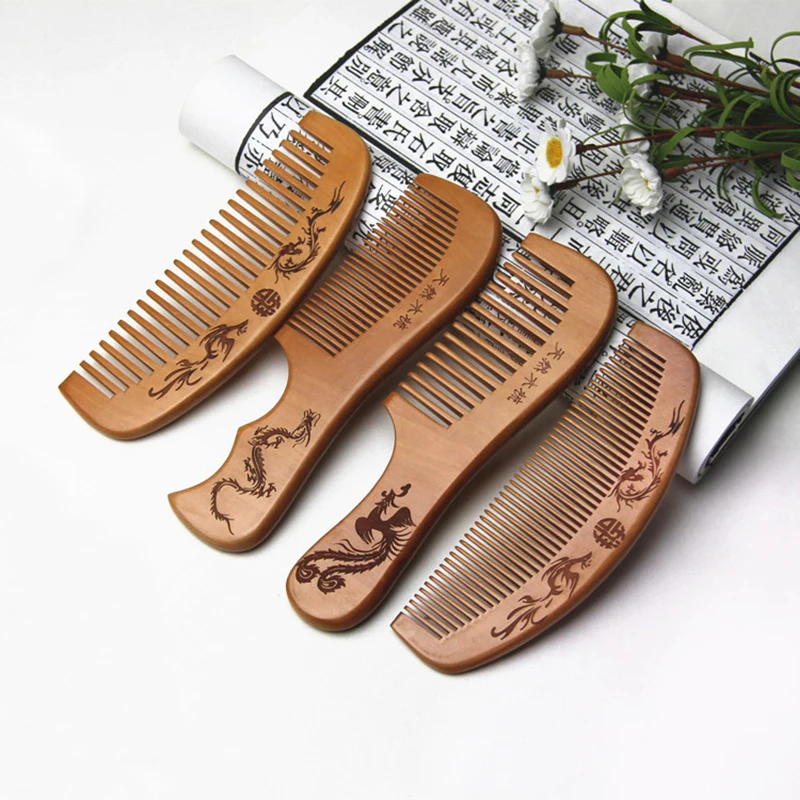 1 шт., натуральная расческа из персикового дерева, антистатические расчески для волос с широкими зубами, массажная расческа для волос, аксессуары для красоты, инструменты для укладки волос